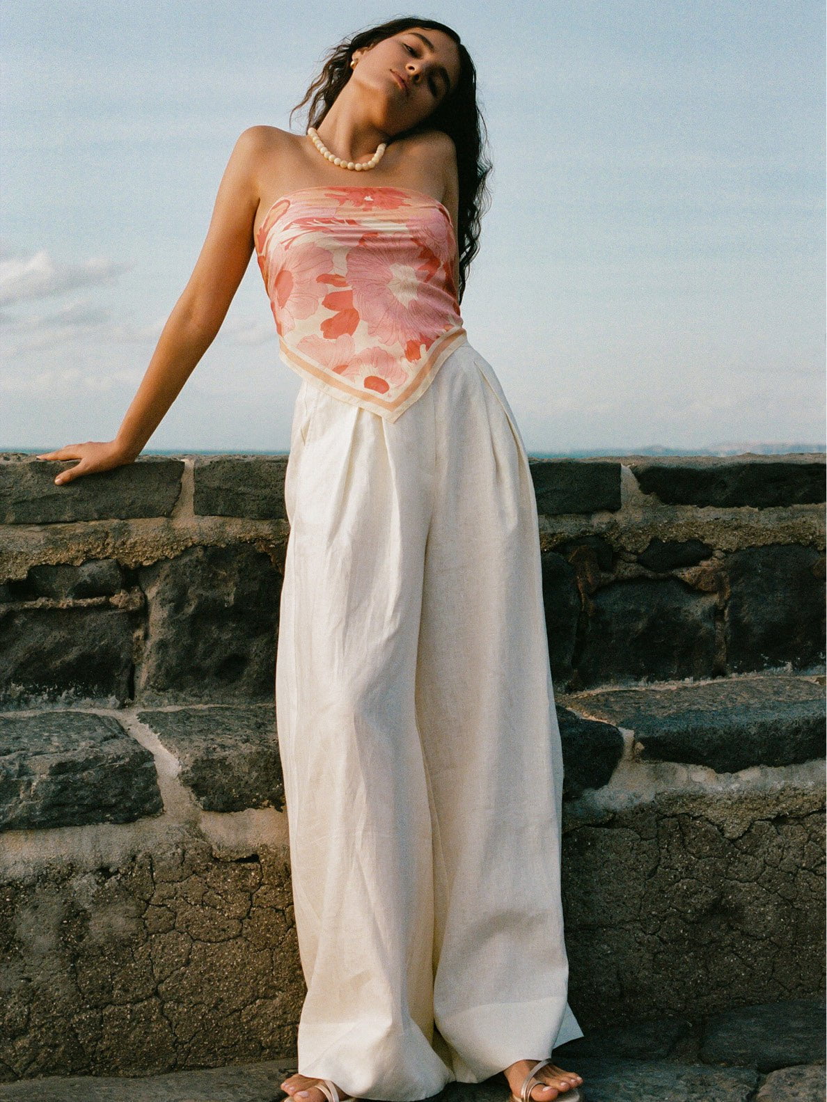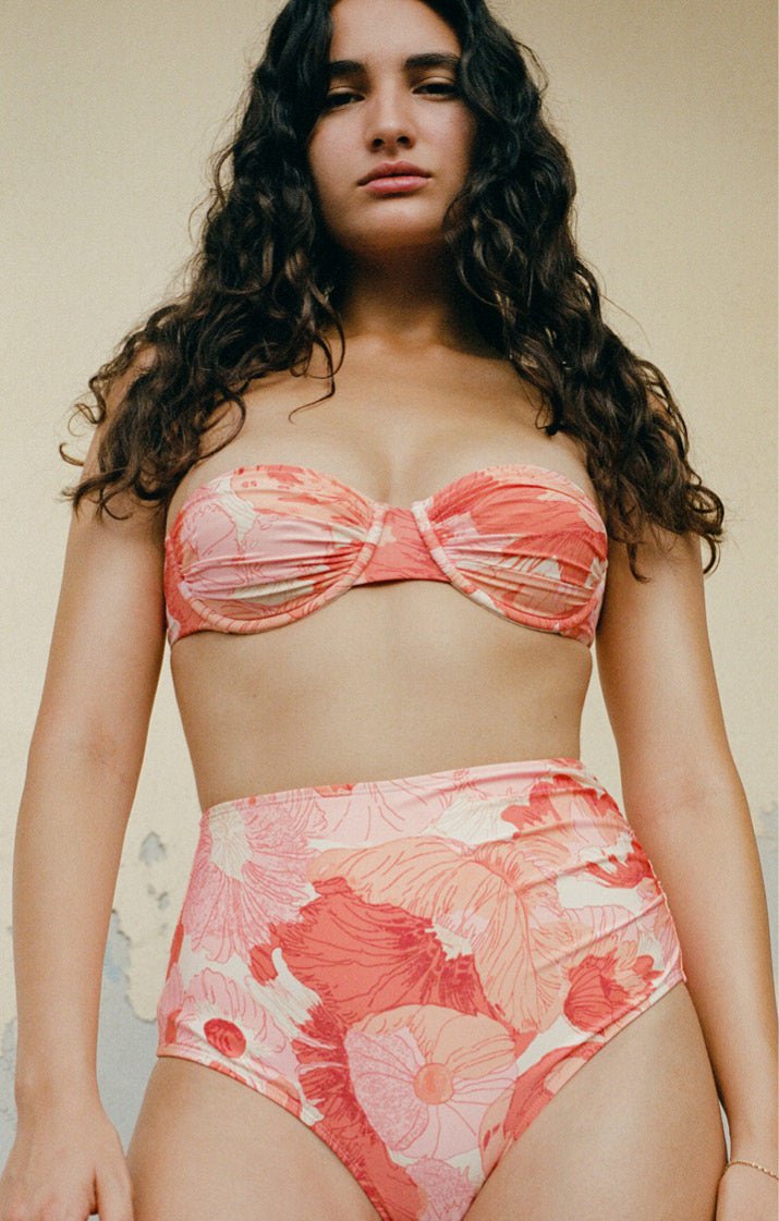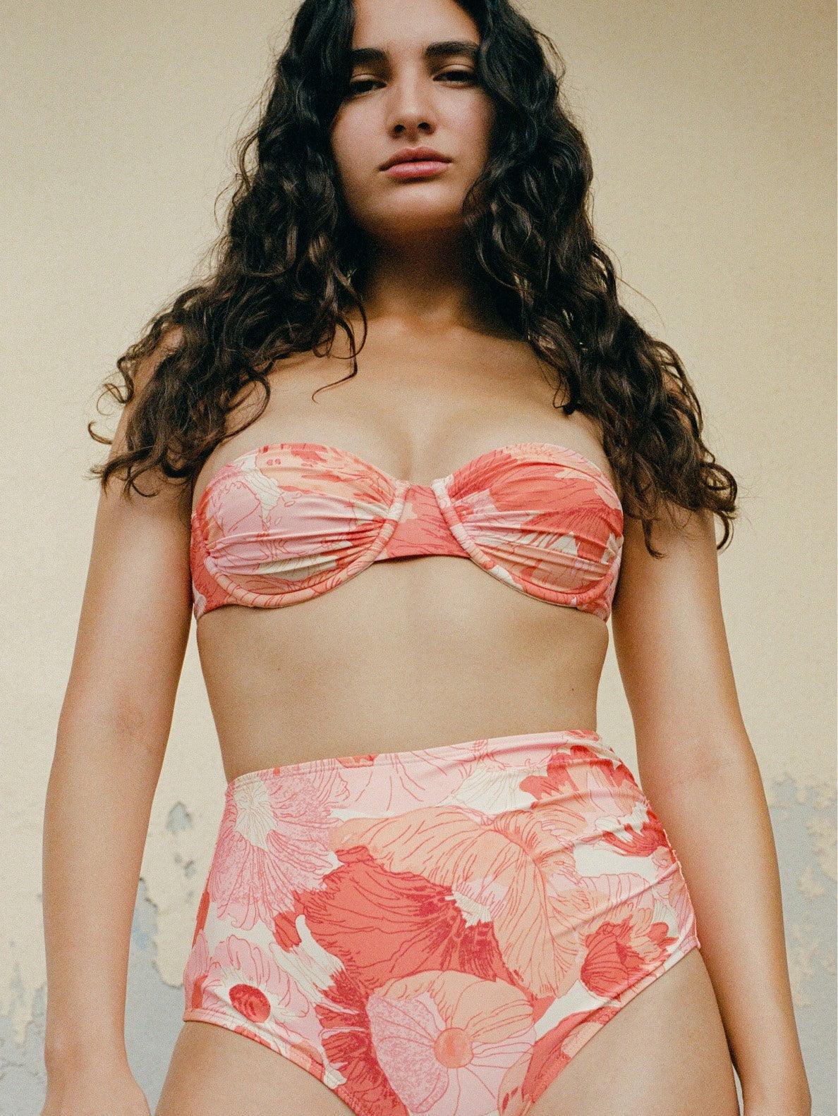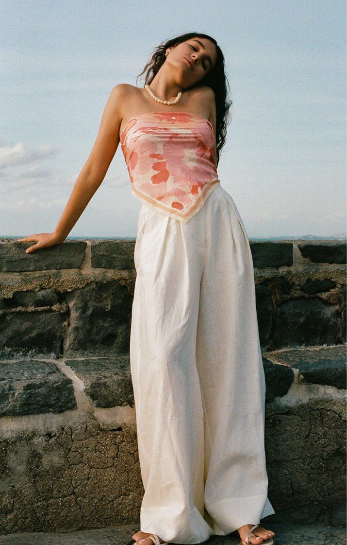 A sunset colour palette of sherbet pink, dusty rose and soft cream come to life in our exclusive hand-drawn floral.