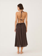 Our new Holiday Skirt arrives in Praline. Crafted from a lightweight silkblend fabrication, this softly flowing Aline midi offers a relaxed fit that can be styled on the natural waist or worn lower on the hips. Designed for ease and movement, it’s the perfect companion for sunsoaked days and balmy summer evenings.