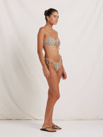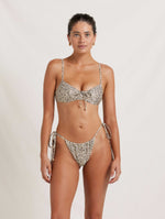 Our Ruched Channel String Pant arrives in Foliage, offering skimpy coverage for sun — drenched days. Featuring adjustable side ties, find your dream coverage with a functioning ruched channel at the front and back. Pair with the matching Solstice Crop for a modern holiday swimsuit.