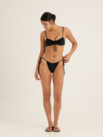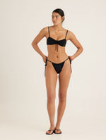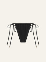 Designed in a timeless Noir hue, our Ruched Channel String Pant offers skimpy coverage for sun—drenched days. Featuring adjustable side ties, find your dream coverage with a functioning ruched channel at the front and back. Pair with the matching Solstice Crop for a modern holiday swimsuit.
