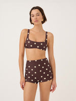 A timeless silhouette with a softly modern edge. Designed with a flattering square scoop neckline and mid coverage, this style offers adjustable straps and back closure for a comfortable, custom fit. Effortlessly chic when paired with your favourite Praline swim bottom.